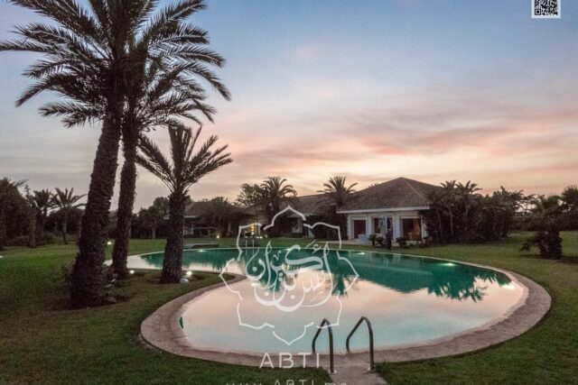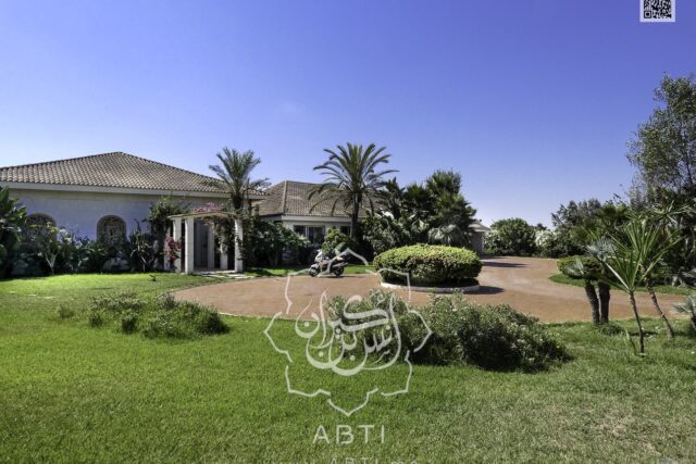 VENDU en zone rurale du prestigieux quartier Labissa à Bouskoura, une villa de maître construite de plain pied sur un beau terrain de 9400m².